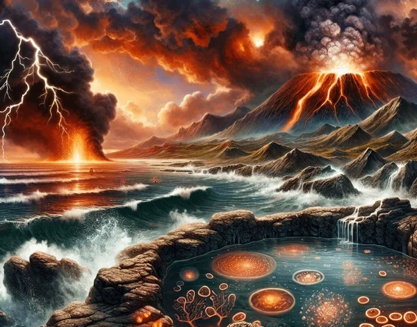 4. Kalıtım ve Doğal Seçilimin Başlaması: Kendini kopyalayabilen ilk sistemlerin (muhtemelen RNA dünyası) oluşması ve evrimleşmeye başlaması.