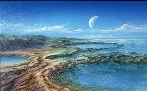 - İlk Okyanuslar: Yerkabuğunun soğumasıyla yoğunlaşan su buharı, ilkel okyanusları oluşturdu. Bu okyanuslar, çeşitli organik molekülleri içeren “ilkel çorba” olarak adlandırılır.